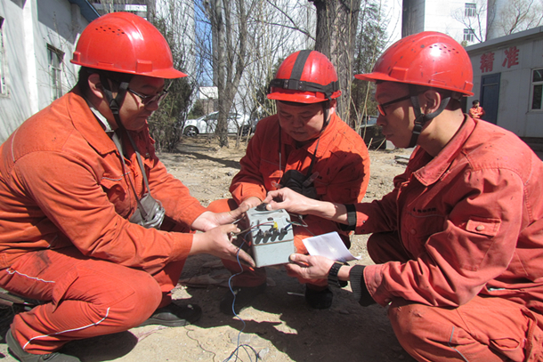 圖為運(yùn)維人員在檢查避雷設(shè)施